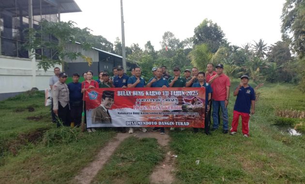 resjembrana.bali.polri.go.id.com, Polda Bali, Polres Jembrana – Dalam rangka memperingati Bulan Bung Karno VII Tahun 2025, Bhabinkamtibmas Desa Mendoyo Dangin Tukad melaksanakan kegiatan gotong royong dan penanaman pohon bersama unsur pemerintahan desa dan masyarakat setempat. Kegiatan yang mengusung tema “PRANA JAGAT KERTHI” ini berlangsung di seputaran Gedung Olahraga Desa Mendoyo Dangin Tukad, Banjar Baler Bale Agung, Kecamatan Mendoyo, Kabupaten Jembrana. Jumat (20/6/2025)