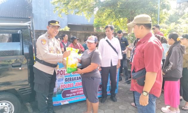 Polda Bali-Polres Jembrana-Polsek Mendoyo menggelar Gerakan Pangan Murah di Area Kantor Desa Delodberawah, Kecamatan Mendoyo, Kabupaten Jembrana, Selasa (2/9).