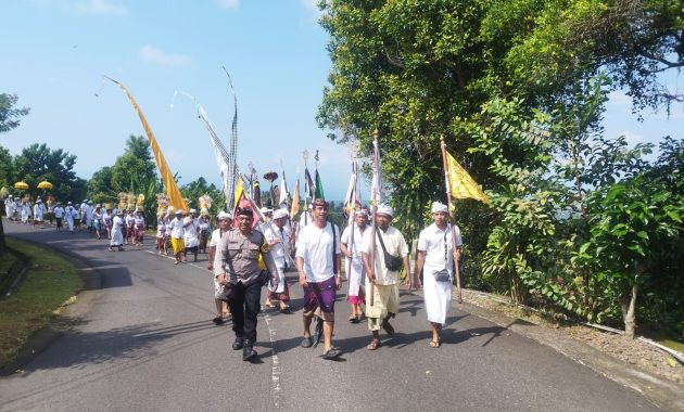 Bhabinkamtibmas Desa Asahduren Aiptu I Komang Yudana, melaksanakan pengamanan kegiatan Kebeji, Ngusaba Purnama Kapat di Pura Dalam Suci dan Pura Puseh, Desa Asahduren dalam kegiatan pengamanan ini Bhabinkamtibmas juga bersinergi dengan TNI dan Pecalang guna menumbuhkan rasa kebersamaan dan kekompakan dalam menjaga Kamtibmas, giat pengamanan dilaksanakan pada hari Senin (6/10/2025)