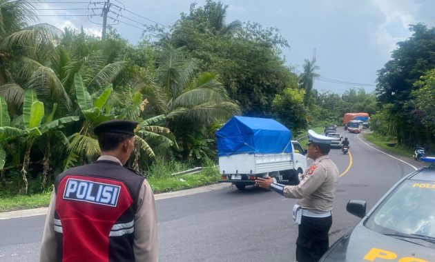 Pekutatan Jembrana, untuk menjaga keamanan, keselamatan, ketertiban dan kelancaran berlalu-lintas di jalan raya khususnya di wilayah Kecamatan Pekutatan, personel UKL Polsek Pekutatan melaksanakan kegiatan patroli Rahayu (cahaya biru) khususnya pada jalur yang dianggap rawan kecelakaan lalu lintas dan kemacetan, kegiatan kali ini dilaksanakan di jalan raya Denpasar Gilimanuk KM 65 – 66 di tanjakan Rudias, Banjar Swastika, Desa Pangyangan, Kecamatan Pekutatan pada hari Senin siang (20/10/2025).