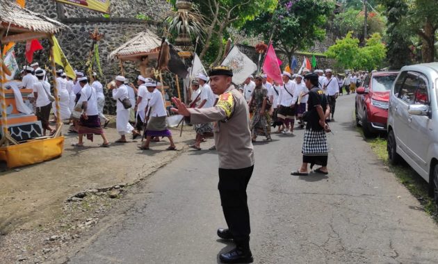 Pekutatan Jembrana, Bhabinkamtibmas selalu hadir ditengah-tengah kegiatan masyarakat dengan tujuan untuk memberikan rasa aman dan nyaman, kali ini Bhabinkamtibmas Desa Manggissari Aipda I Putu Mahardika melaksanakan pengamanan kegiatan upacara Bhuta Yadnya Mepade di Pura Bhujangga Sakti Luwih, Banjar Bunut Bolong, Desa Manggissari, Kecamatan Pekutatan, pada hari Rabu (29/10/2025).