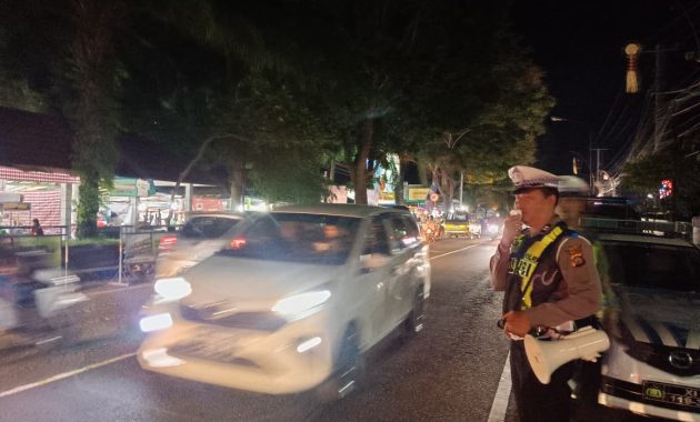 Jembrana – Satuan Tugas Preemtif Subsatgas Dikmas Operasi Zebra Agung 2025 melaksanakan kegiatan sosialisasi keselamatan berlalu lintas di kawasan Pasar Malam Tegal Cangkring, Kecamatan Mendoyo, Kabupaten Jembrana, Kamis (20/11/2025) malam.